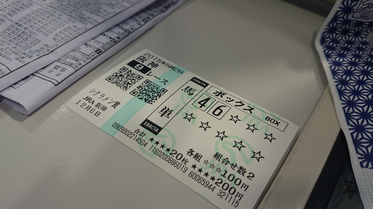 これは私が勝った実際の馬券。
