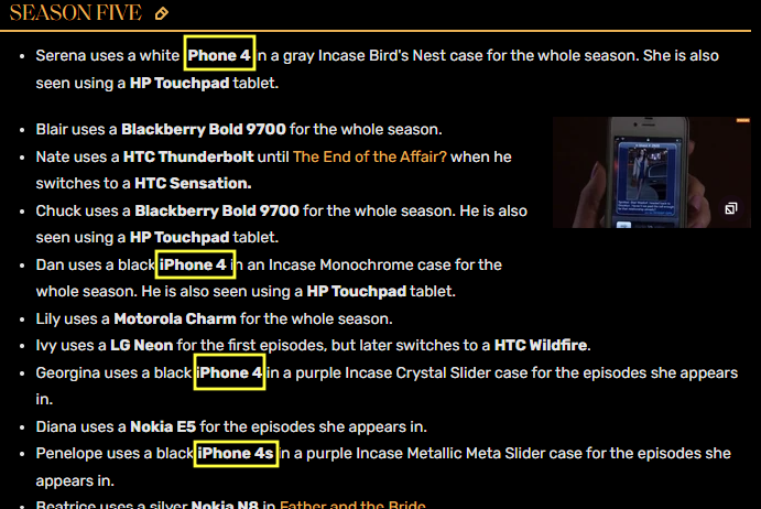 メインキャストがどの携帯電話を持っていたか、