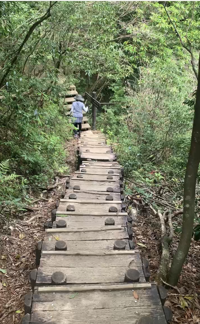 山道はやや険しく、細い階段も多い。