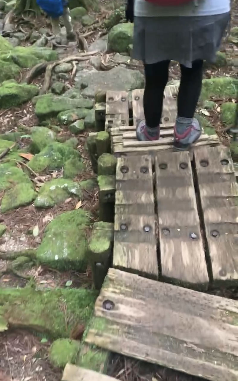 私の友人も、縄文杉トレッキングのために何キロも歩いたり、階段を上ったりしてきていた。